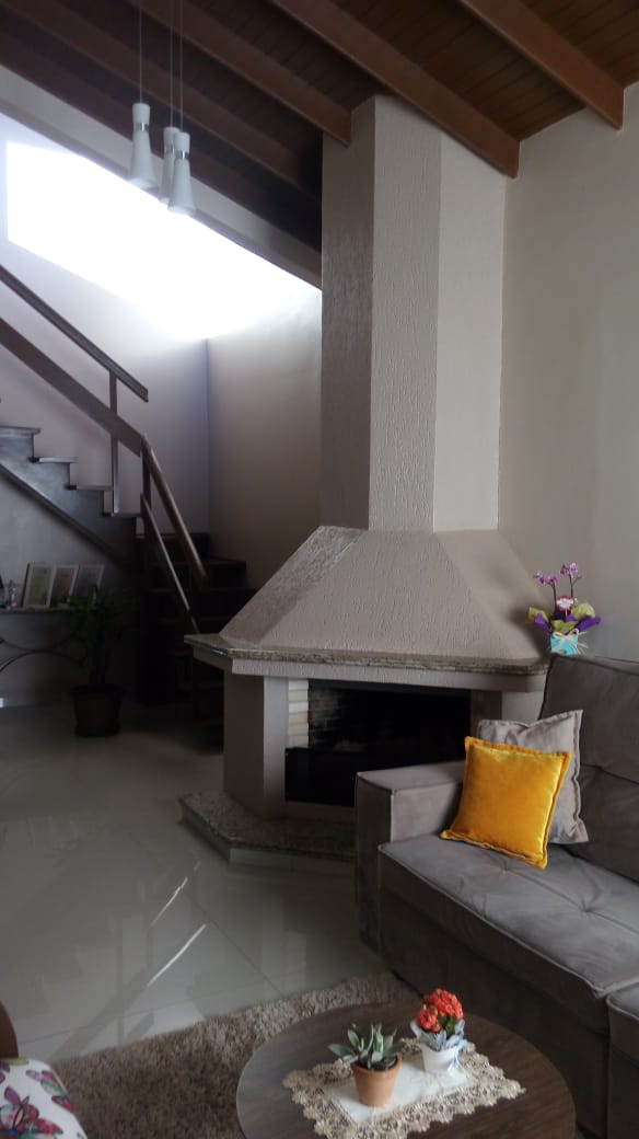 – lareira, churrasqueira, piso porcelanato, casa cercada e portão eletrônico.