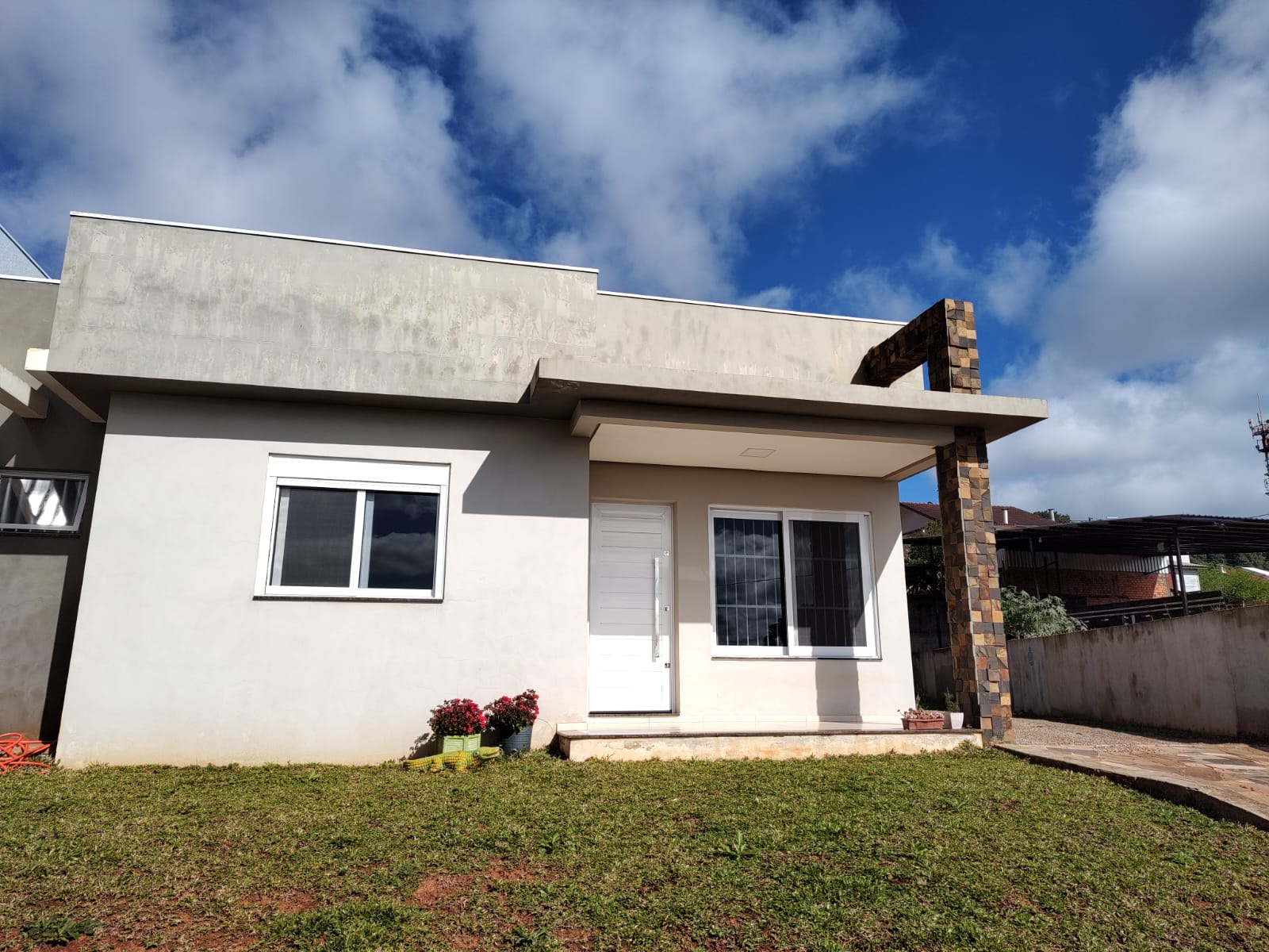 Possuindo 3 dormitórios sendo uma suíte, sala, cozinha, banheiro, garagem, e amplo terreno possuindo 632,31m² e casa possuindo 142,51m².