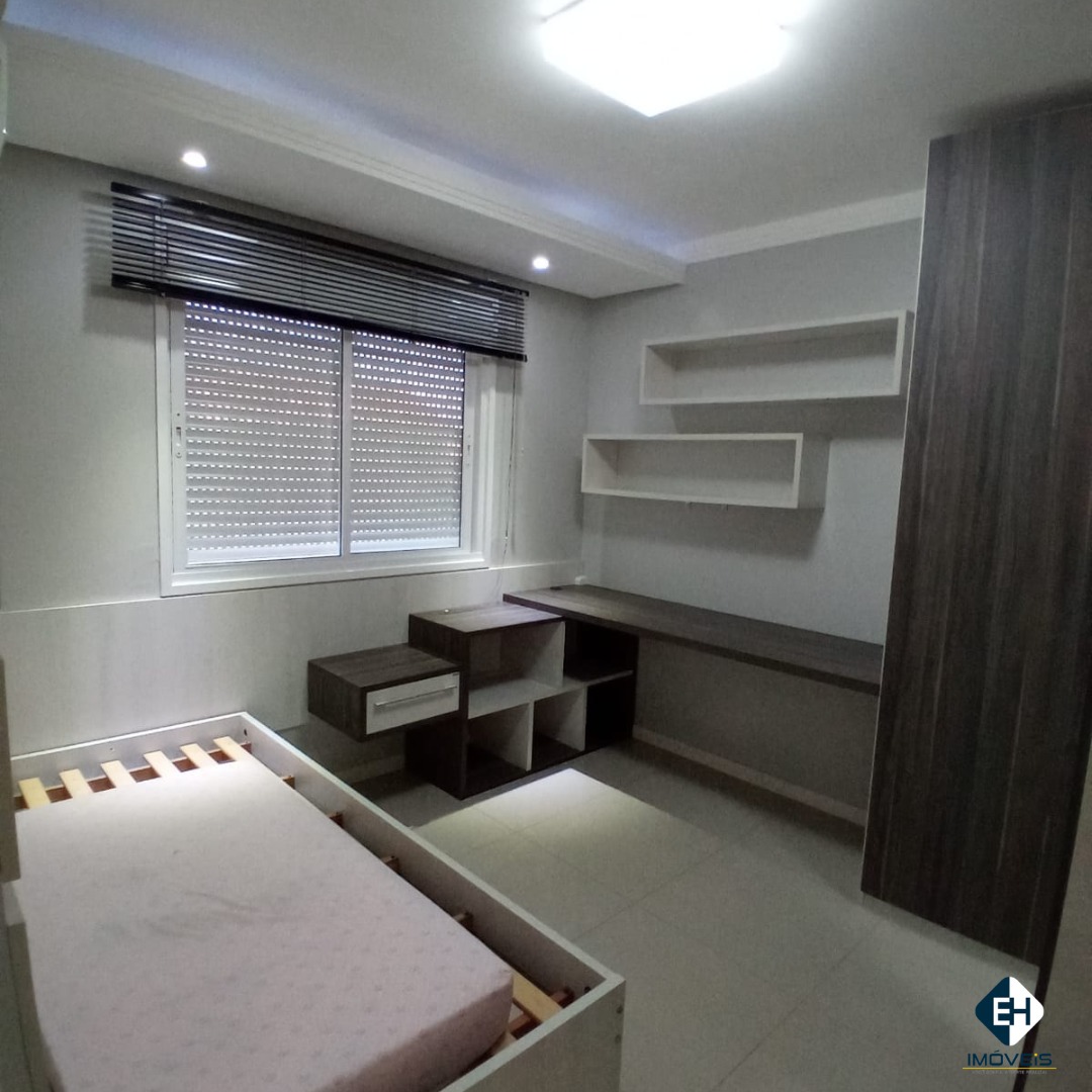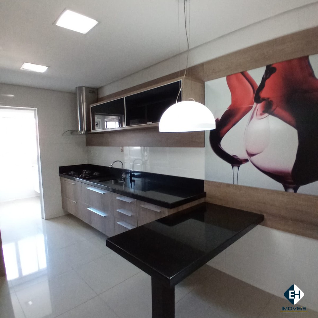 Conta com 3 dormitórios, sendo um suíte, 2 banheiros, sala ampla, cozinha, lavanderia, 3 ares condicionados, sacada espaçosa com churrasqueira e 2 vagas de garagem com depósito. Todos os móveis sob medida ficam no apartamento.