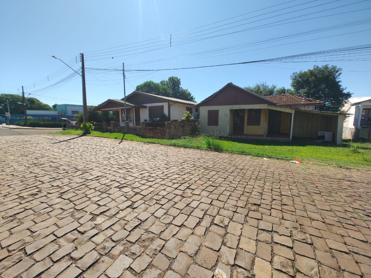 Terreno com 800 m² e duas casas de madeira construídas, este imóvel de esquina oferece uma ótima possibilidade de investimento.