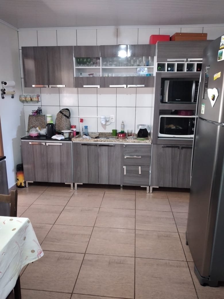 Casa com 85,13 m², tendo 3 quartos, sala, cozinha, banheiro, lavanderia, garagem para 1 carro, churrasqueira, cercada e portão eletrônico.
