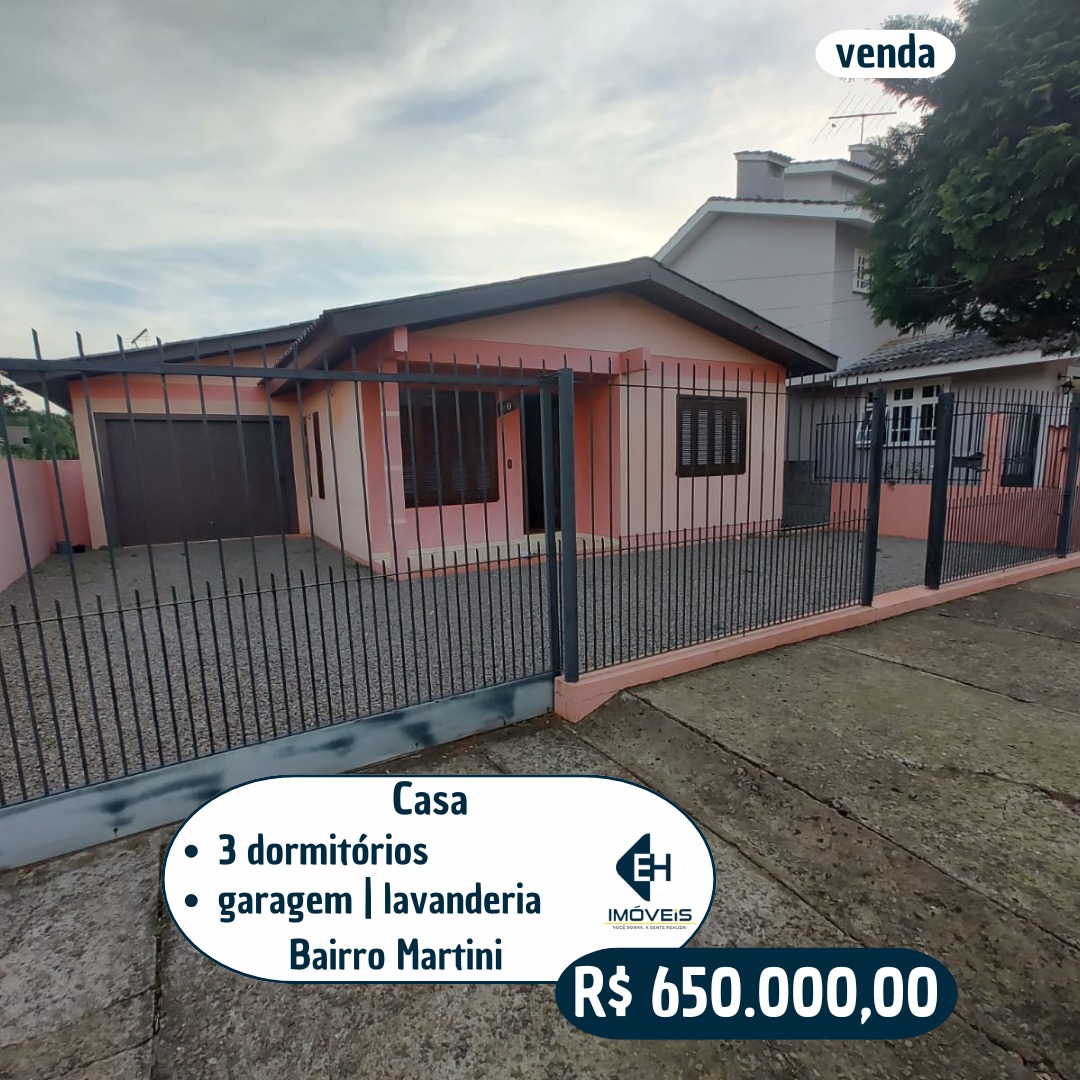 A casa conta com 3 dormitórios, banheiro, sala, cozinha, lavanderia e garagem.