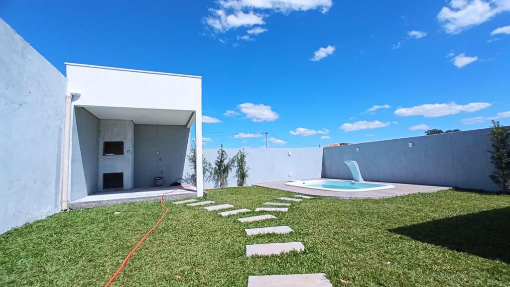 Casa medindo aproximadamente 87,8m² sendo 55,80m² privativos + 26m² pergolado + 6m² Quiosque