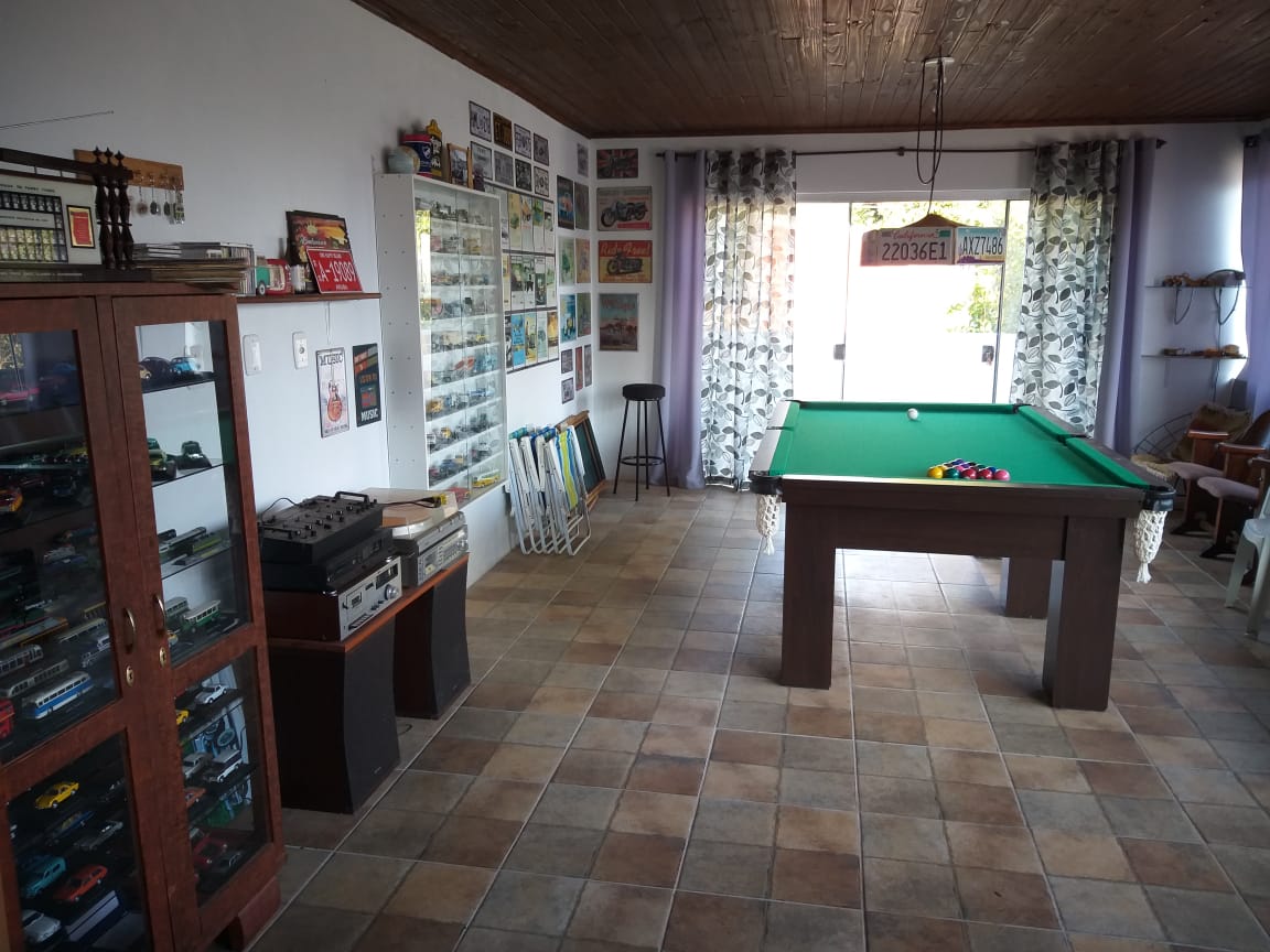 Casa com área construída de 276,44m². Tendo 3 quartos ( 1 suíte + 2 quartos), 1 quarto de empregada, dois banheiros sociais, 1 sala, armários embutidos nos quartos, lareira, garagem para 6 carros, quiosque com churrasqueira e terraço, portão eletrônico, cercada com grade e muro.